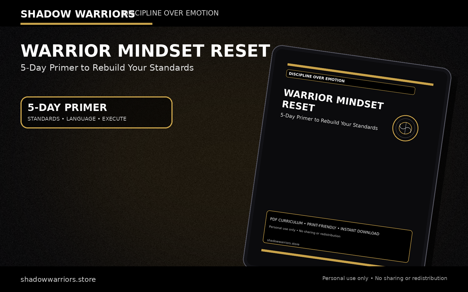A 5-day mindset primer to rebuild standards, tighten language, and execute without negotiating with yourself. Fast reset. Real structure.